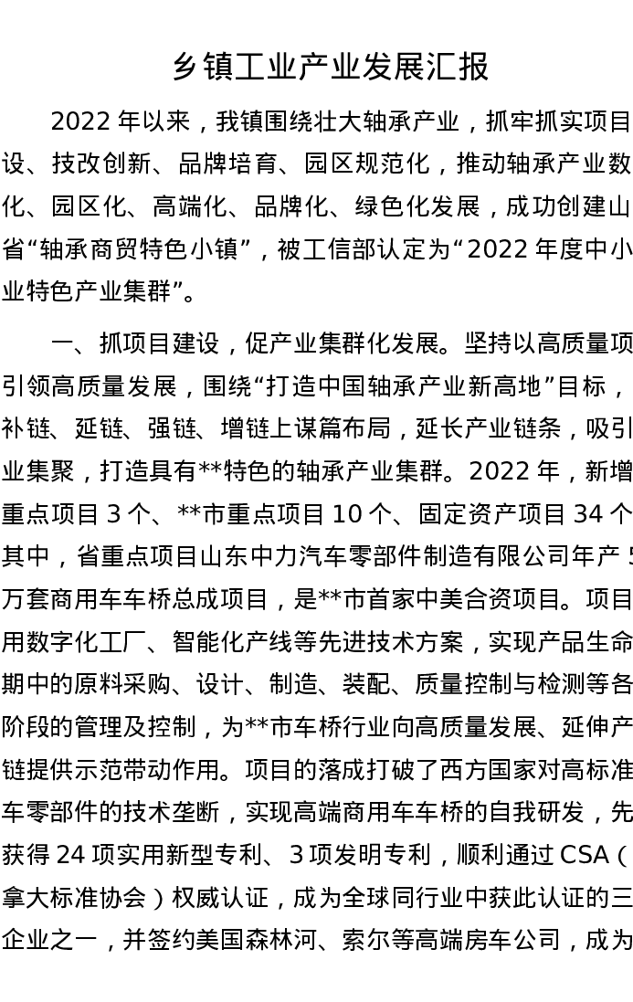 乡镇工业产业发展汇报