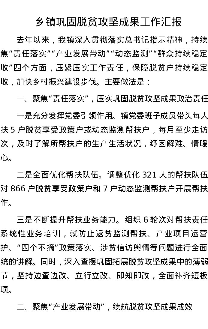 乡镇巩固脱贫攻坚成果工作汇报