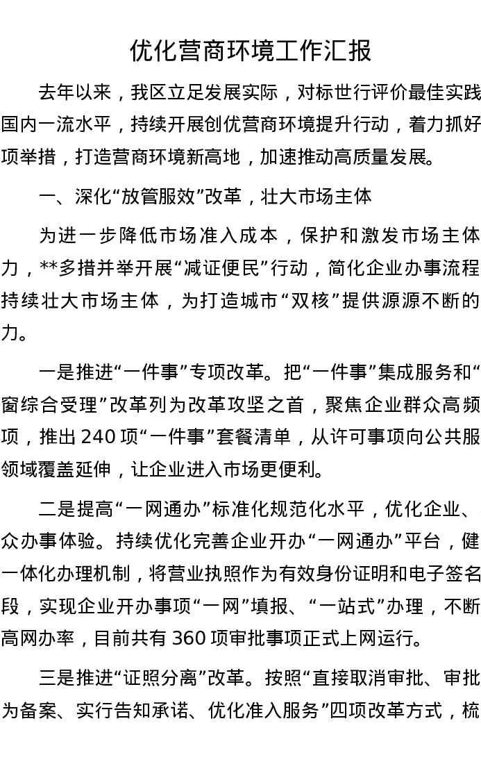 优化营商环境工作汇报