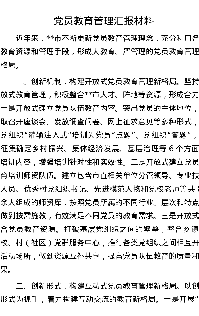 党员教育管理汇报材料