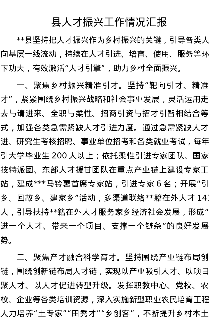县人才振兴工作情况汇报