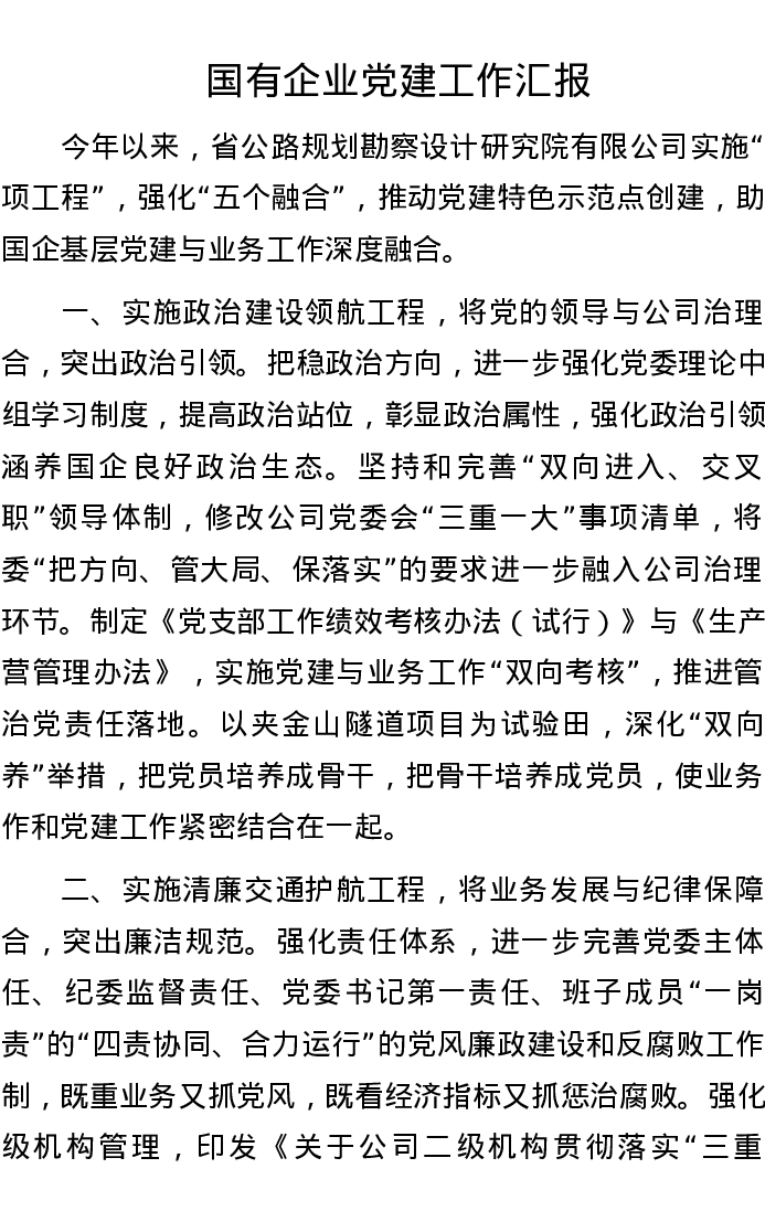 国有企业党建工作汇报