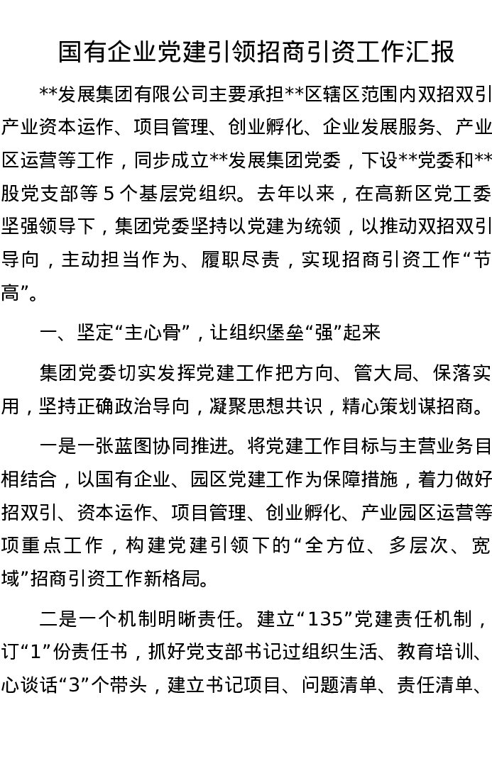 国有企业党建引领招商引资工作汇报