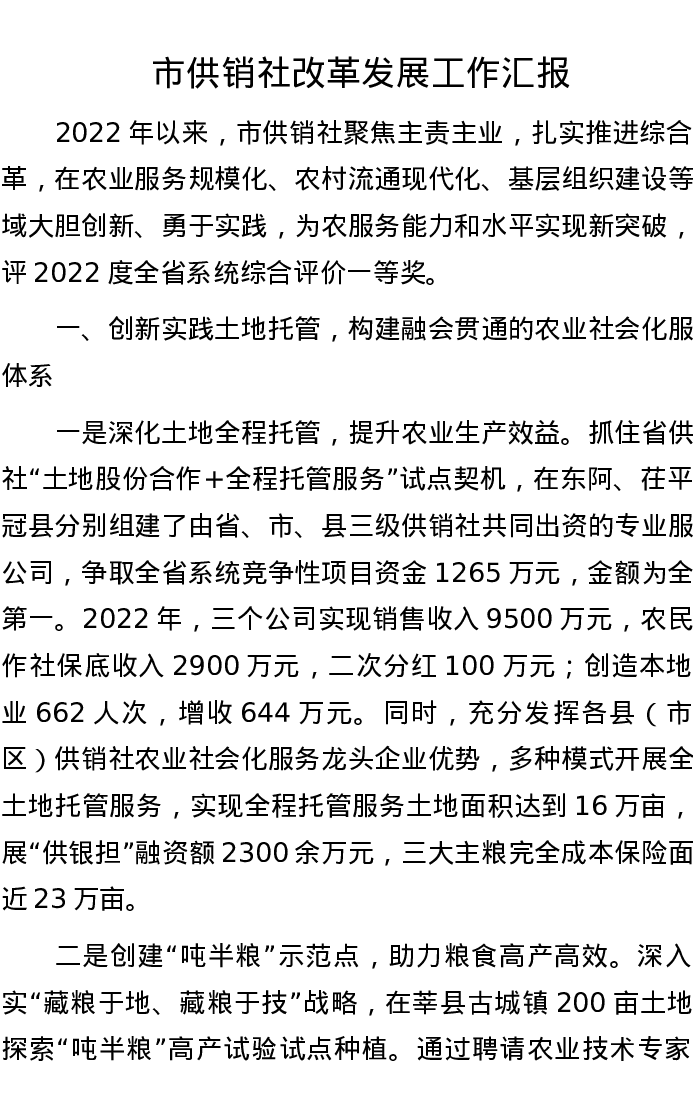市供销社改革发展工作汇报