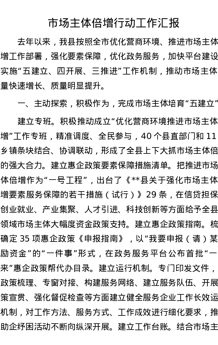 市场主体倍增行动工作汇报