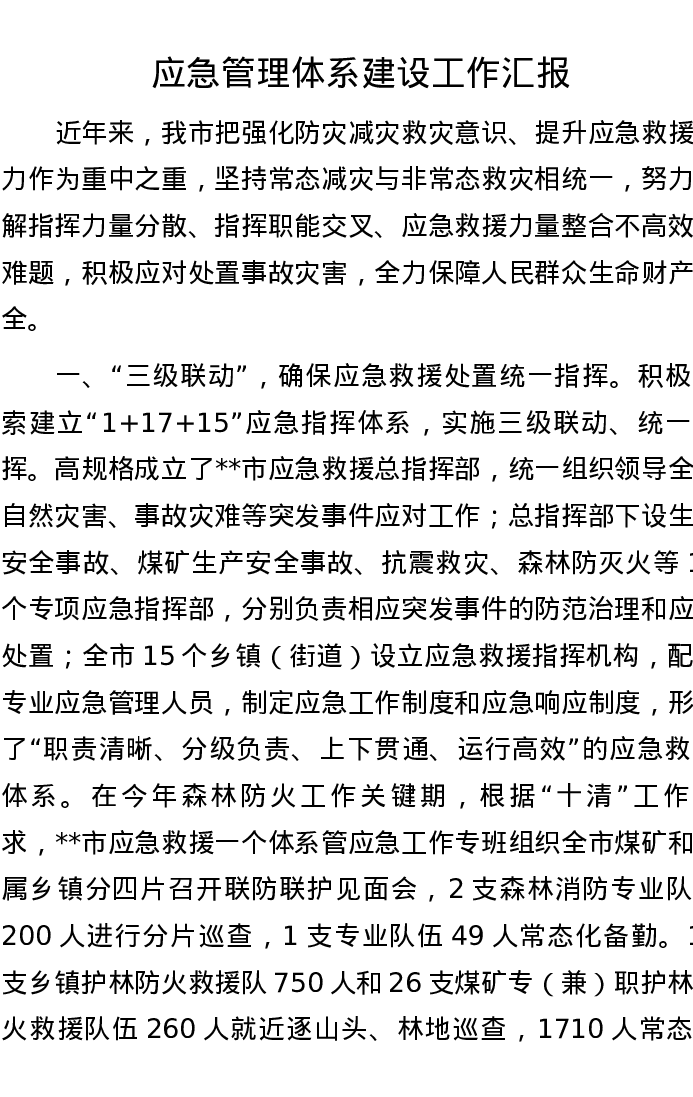 应急管理体系建设工作汇报