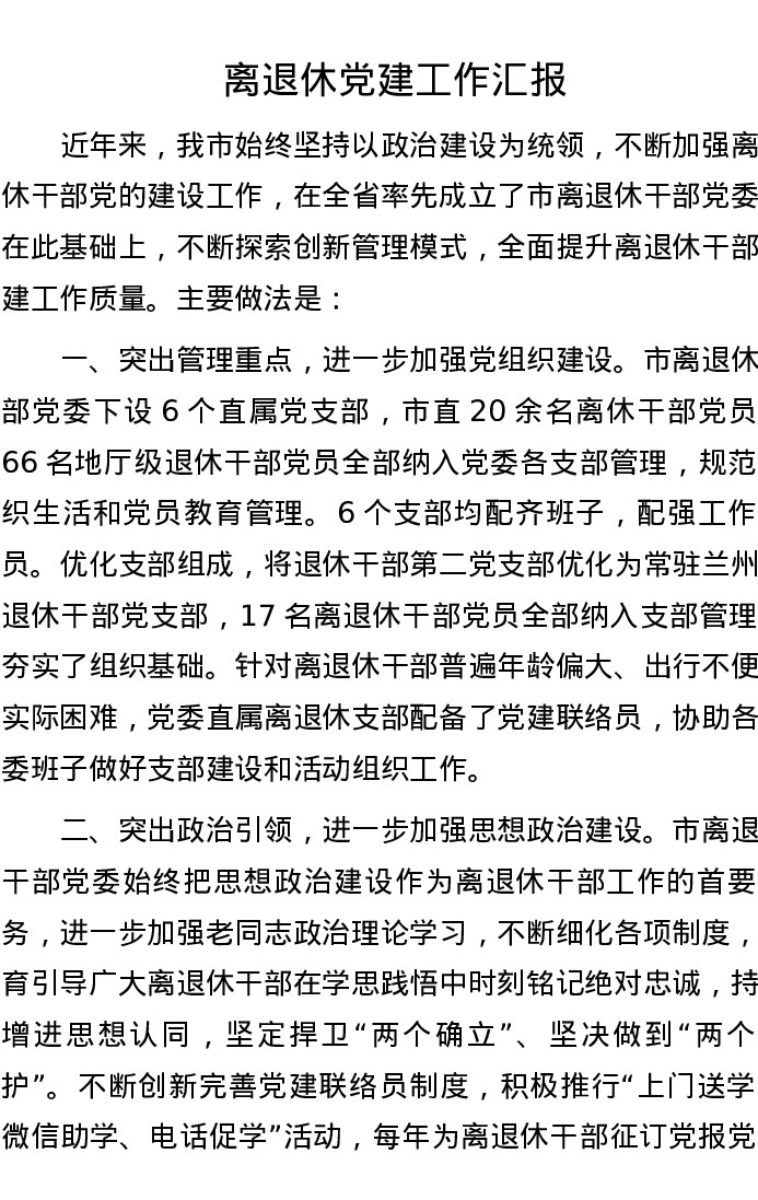离退休党建工作汇报