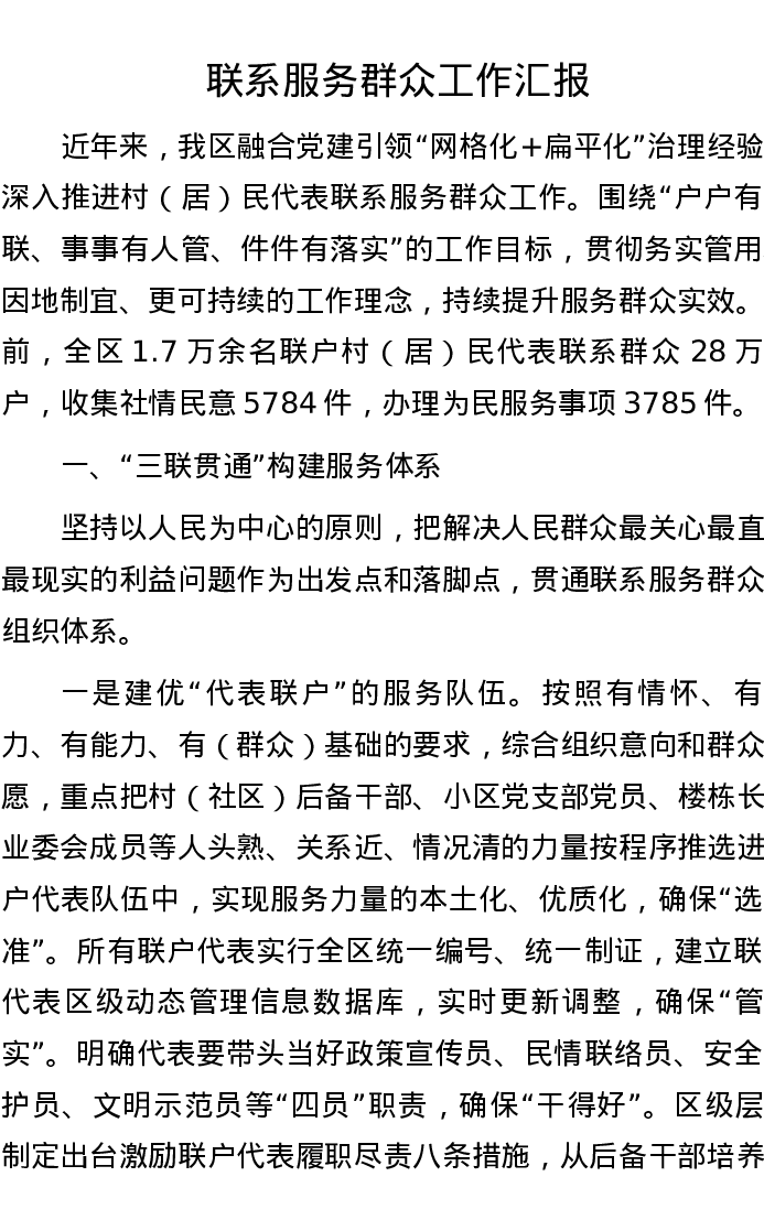 联系服务群众工作汇报