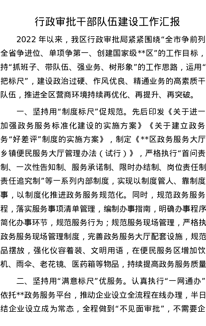 行政审批干部队伍建设工作汇报