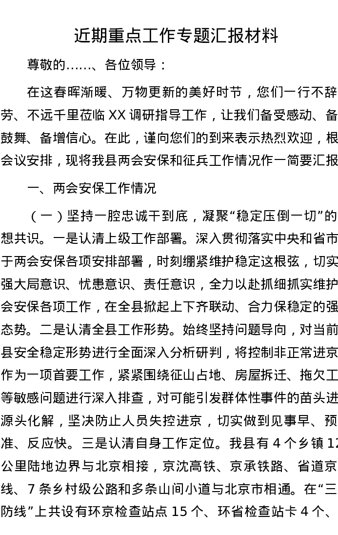 近期重点工作专题汇报材料