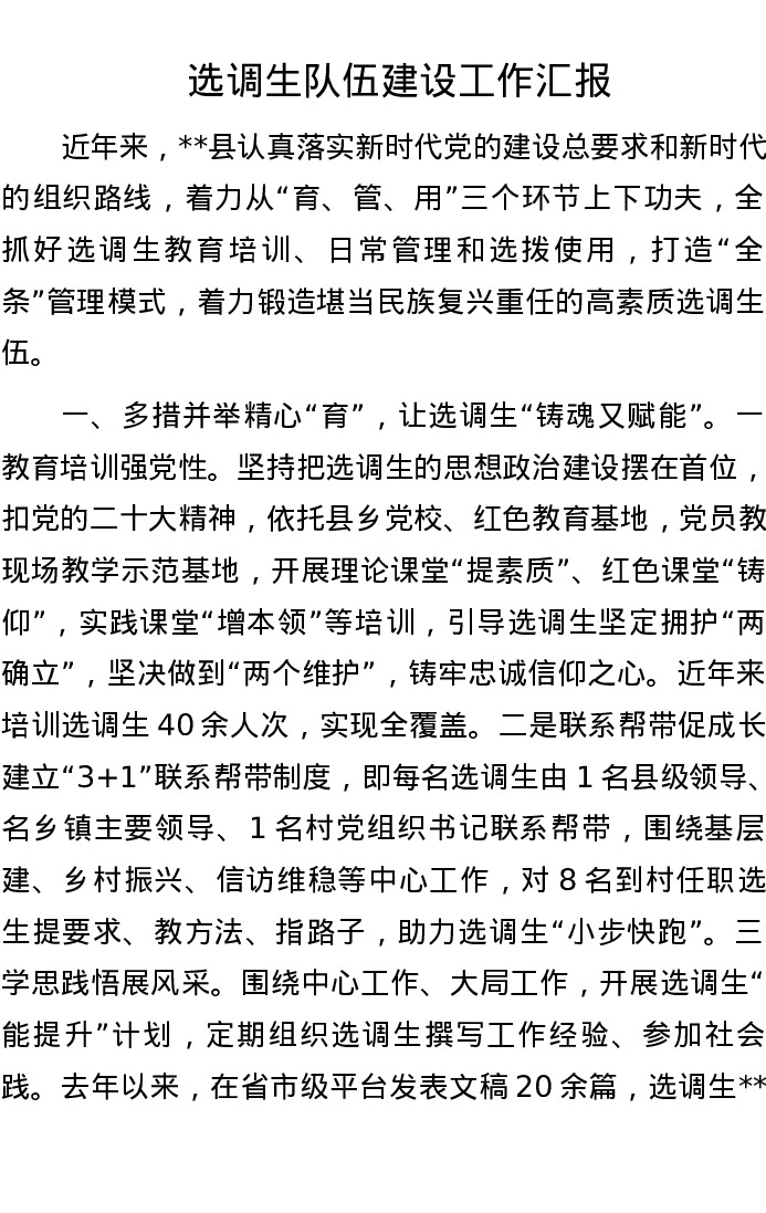 选调生队伍建设工作汇报