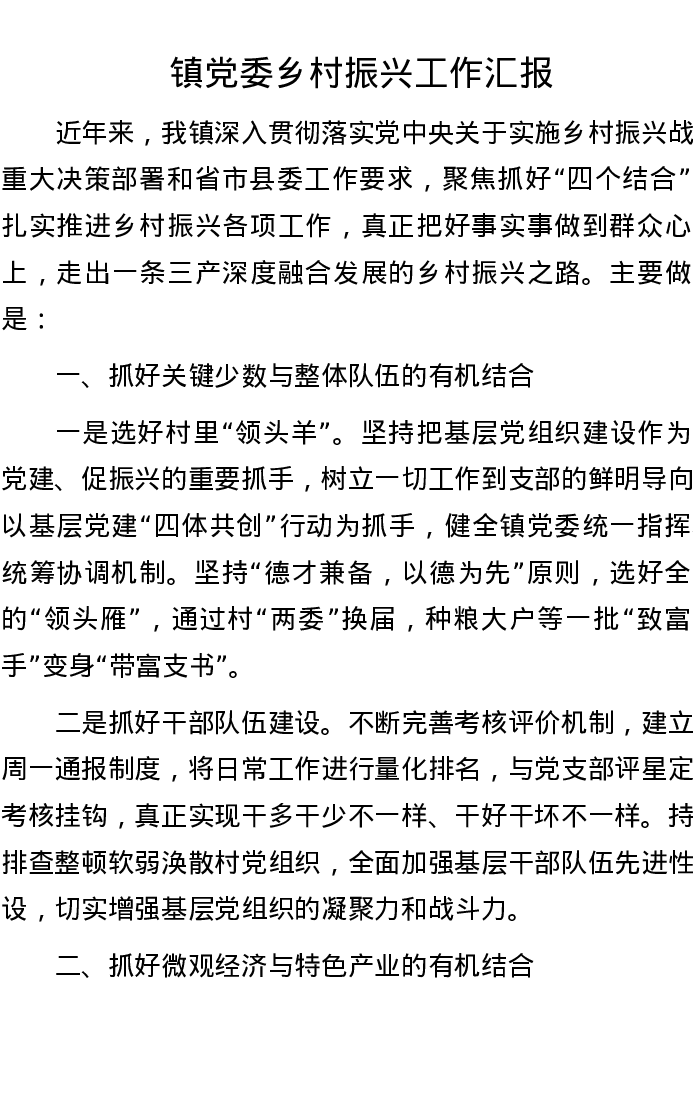 镇党委乡村振兴工作汇报
