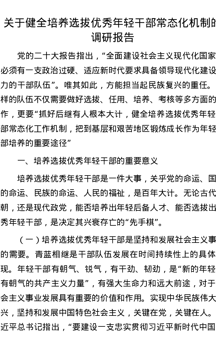 关于健全培养选拔优秀年轻干部常态化机制的调研报告