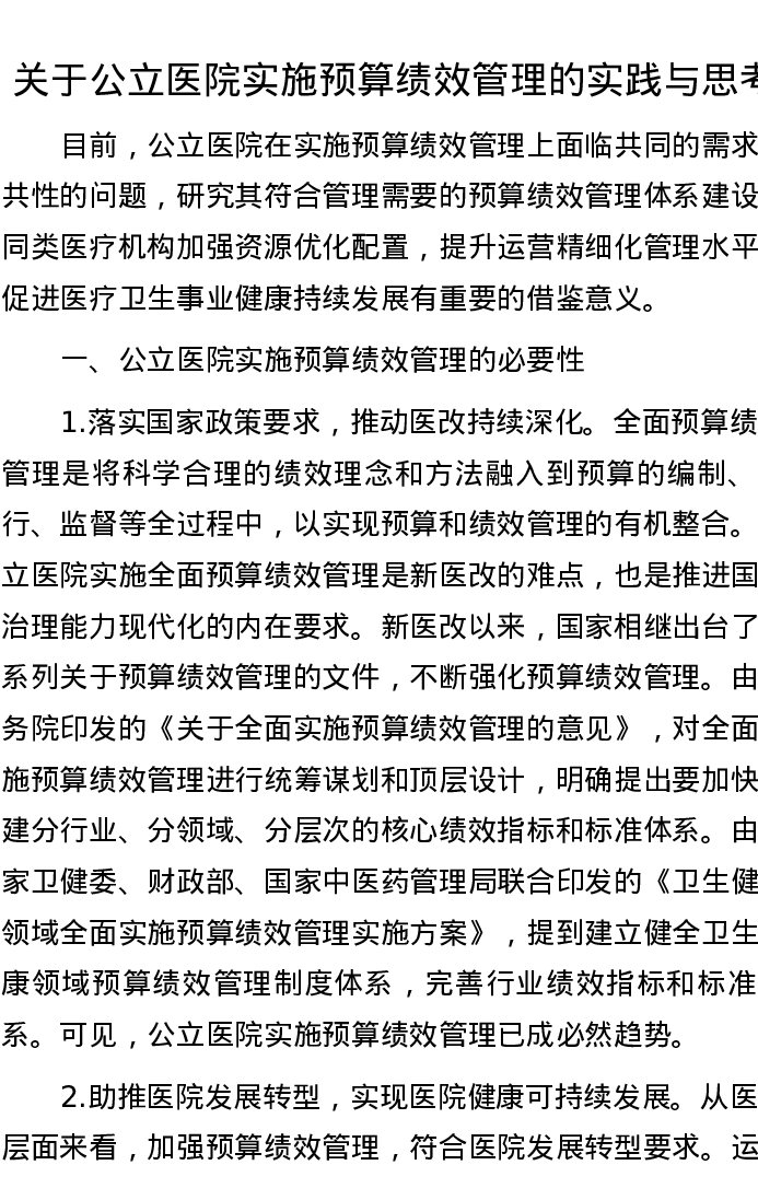 关于公立医院实施预算绩效管理的实践与思考