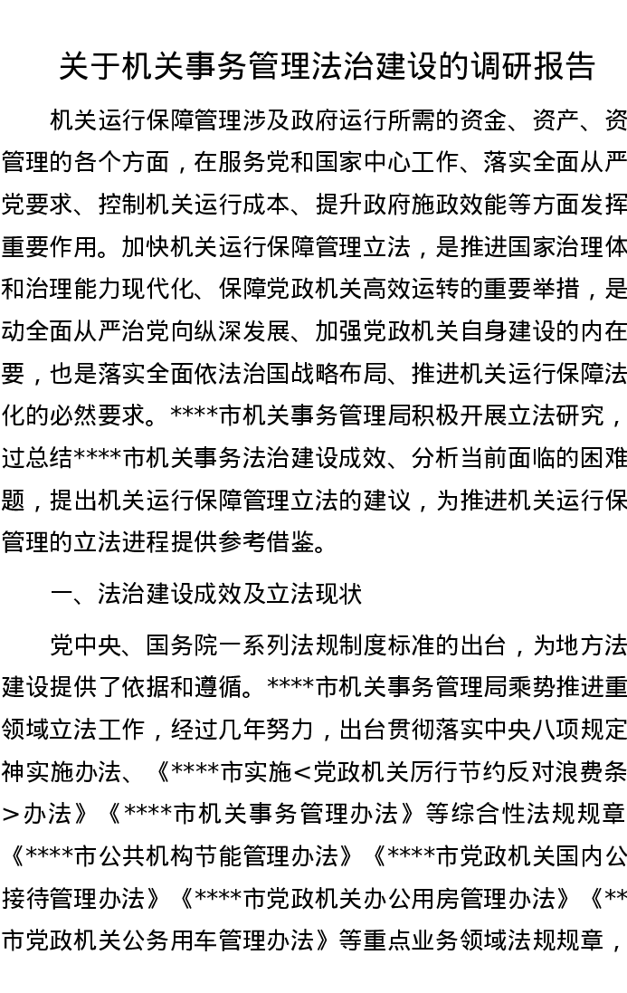 关于机关事务管理法治建设的调研报告