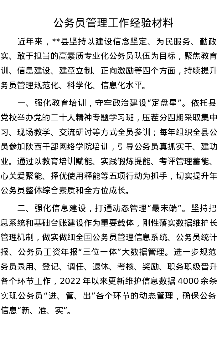 公务员管理工作经验材料