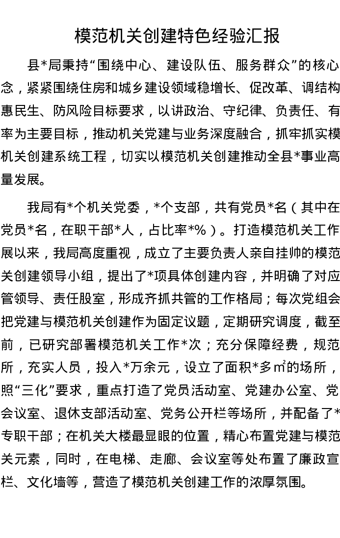 模范机关创建特色经验汇报