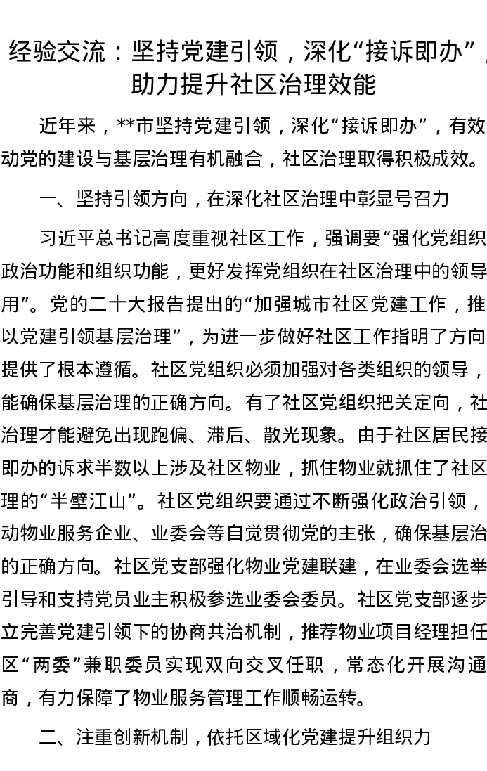 经验交流:坚持党建引领,深化“接诉即办”,助力提升社区治理效能