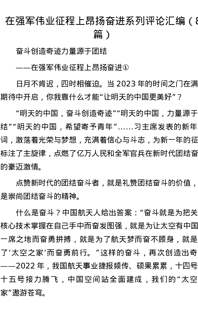 在强军伟业征程上昂扬奋进系列评论汇编(8篇)
