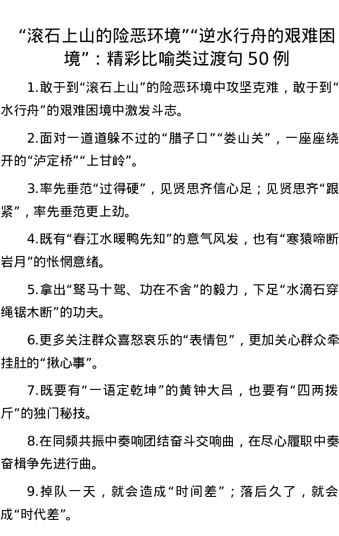 “滚石上山的险恶环境”“逆水行舟的艰难困境”:精彩比喻类过渡句50例