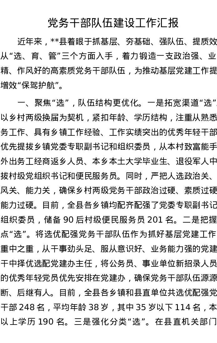 党务干部队伍建设工作汇报