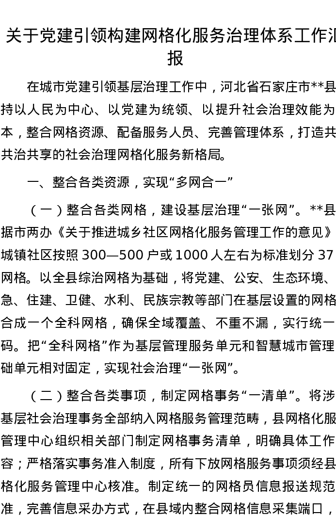 关于党建引领构建网格化服务治理体系工作汇报