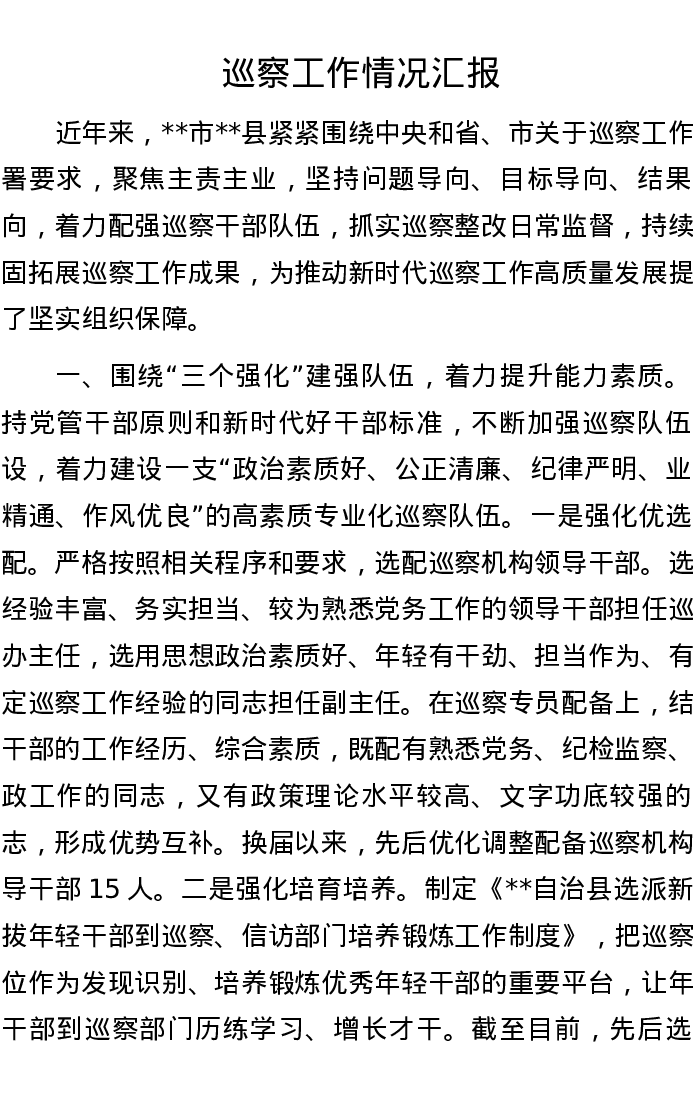 巡察工作情况汇报