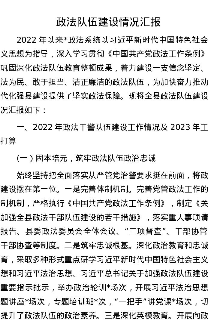 政法队伍建设情况汇报