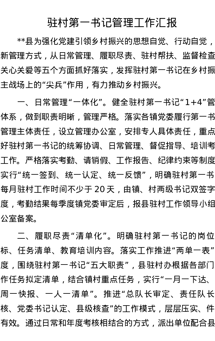 驻村第一书记管理工作汇报