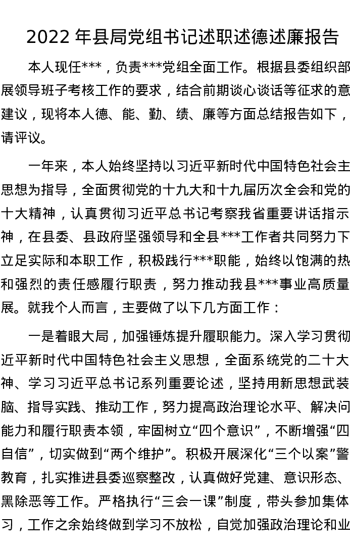 2022年县局党组书记述职述德述廉报告