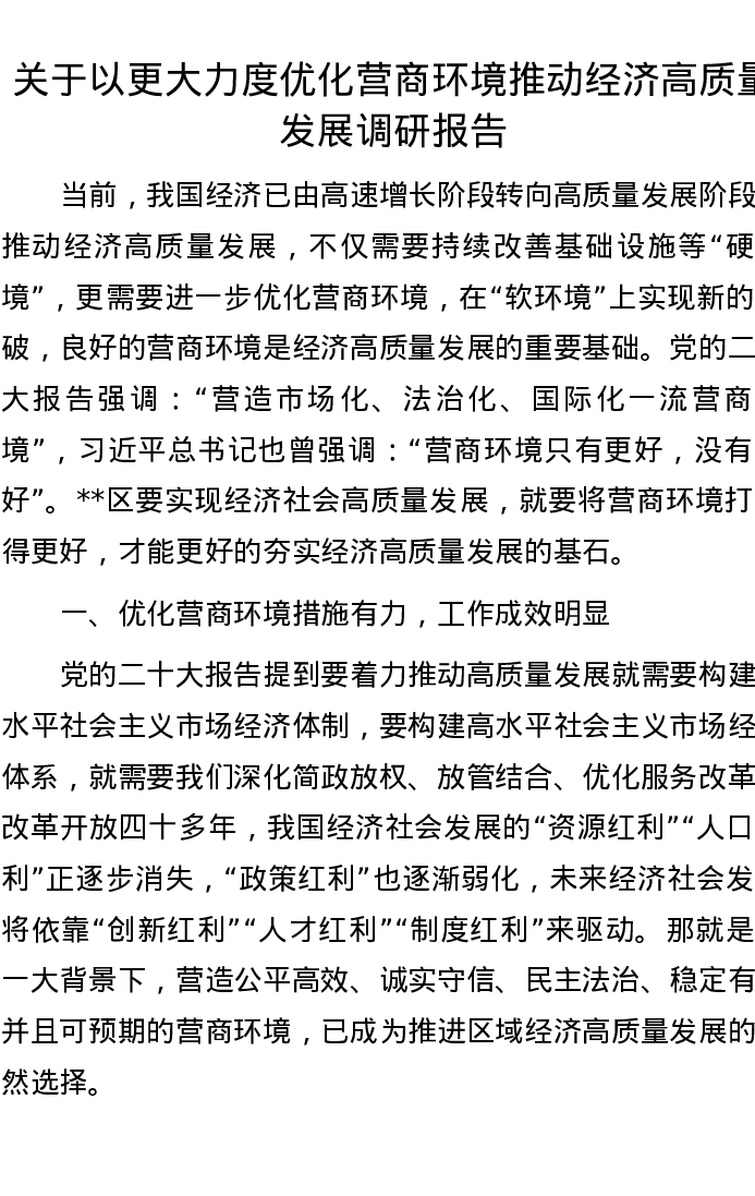 关于以更大力度优化营商环境推动经济高质量发展调研报告