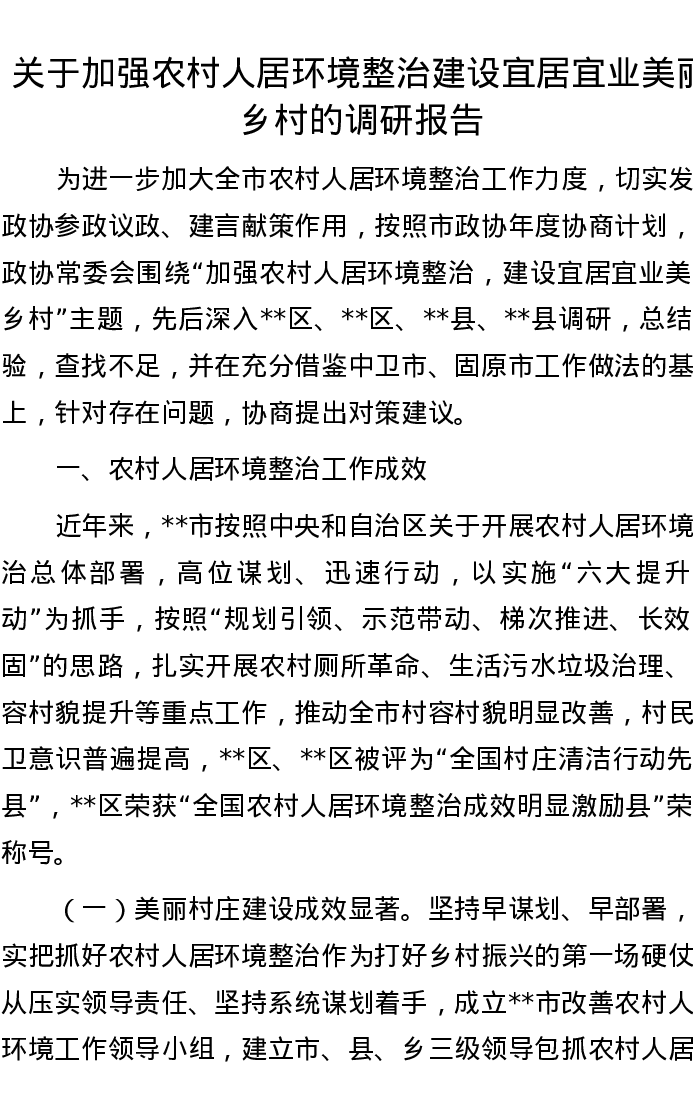 关于加强农村人居环境整治建设宜居宜业美丽乡村的调研报告