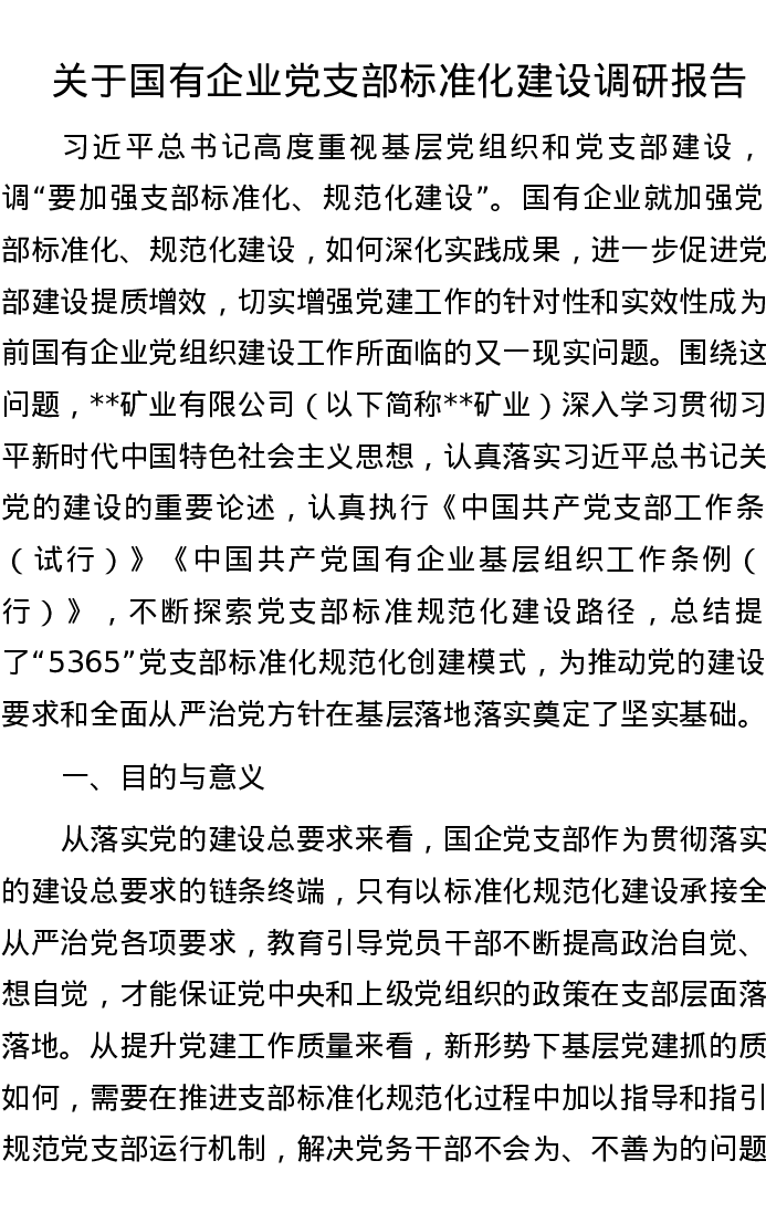 关于国有企业党支部标准化建设调研报告