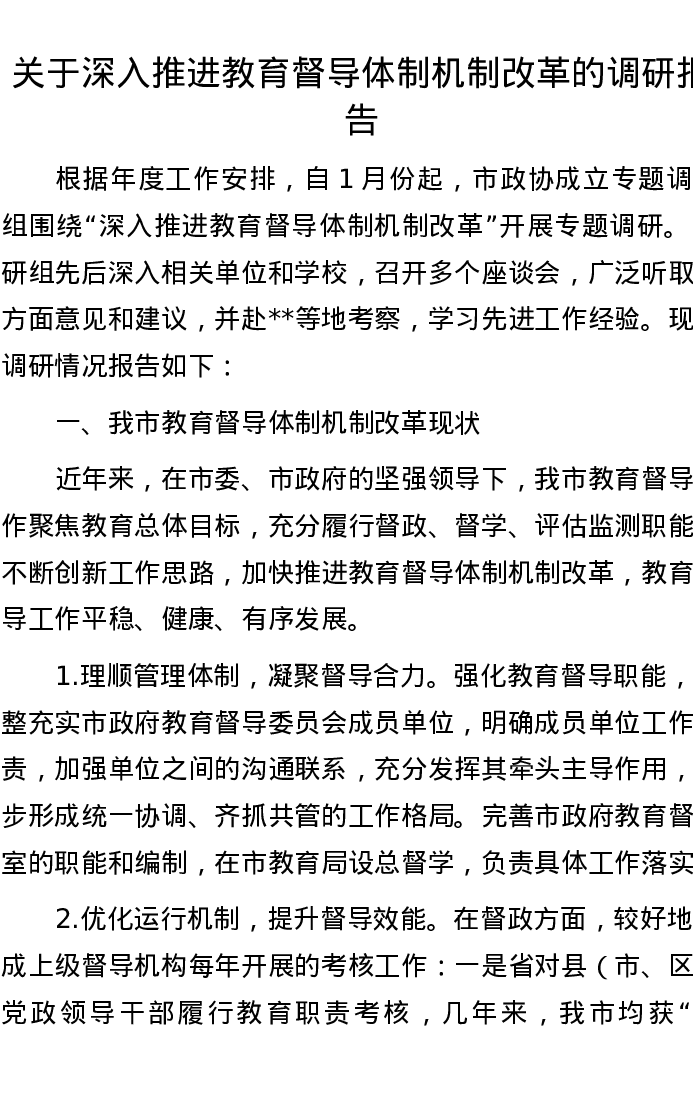 关于深入推进教育督导体制机制改革的调研报告
