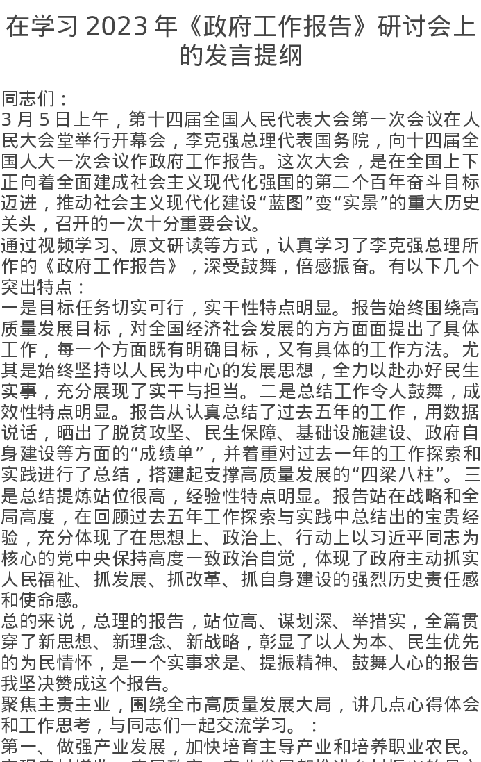 在学习2023年《政府工作报告》研讨会上的发言提纲