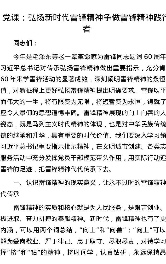 党课:弘扬新时代雷锋精神 争做雷锋精神践行者