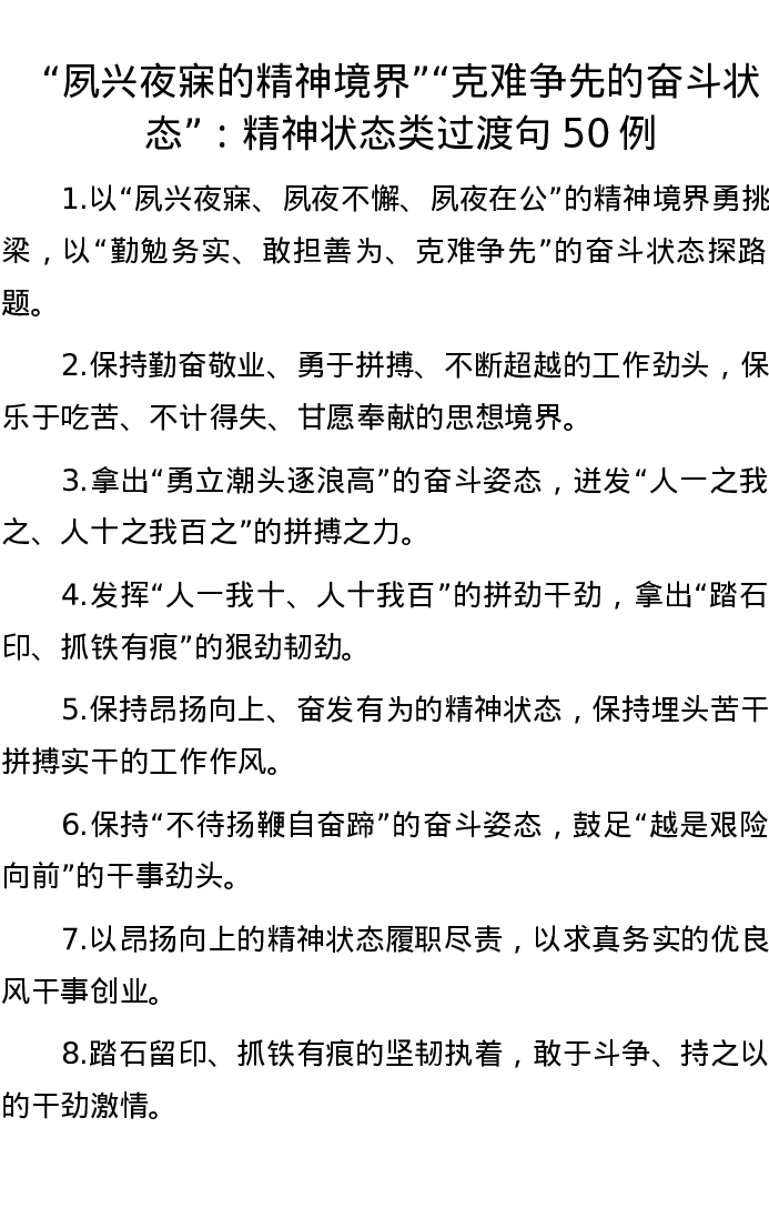 “夙兴夜寐的精神境界”“克难争先的奋斗状态”:精神状态类过渡句50例