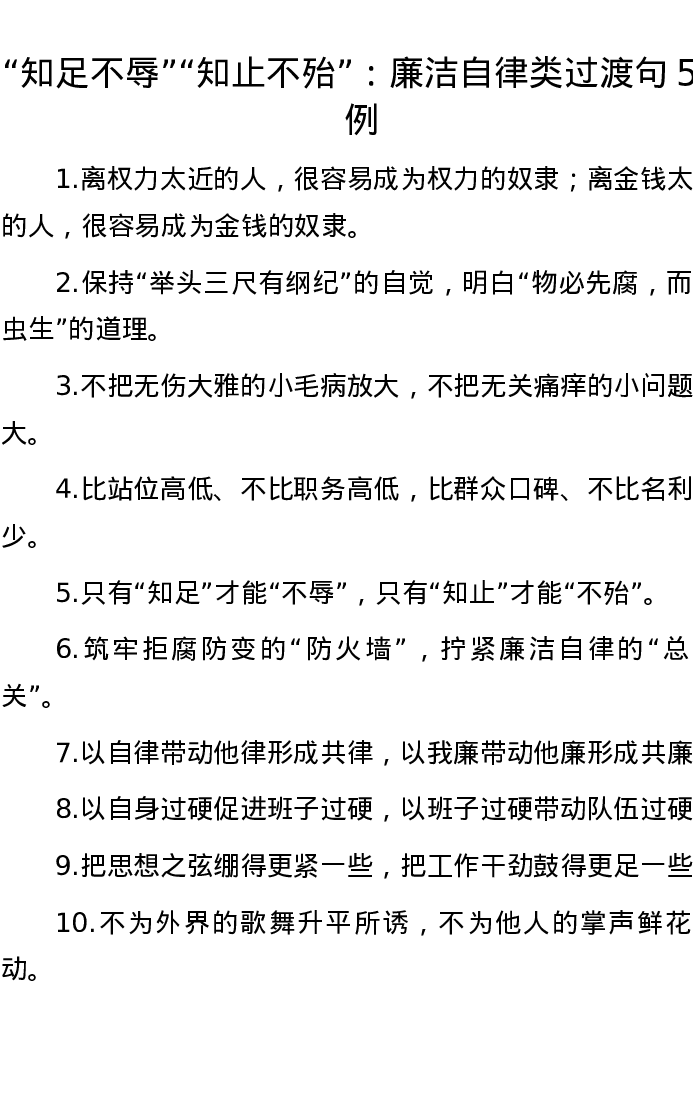 “知足不辱”“知止不殆”:廉洁自律类过渡句50例