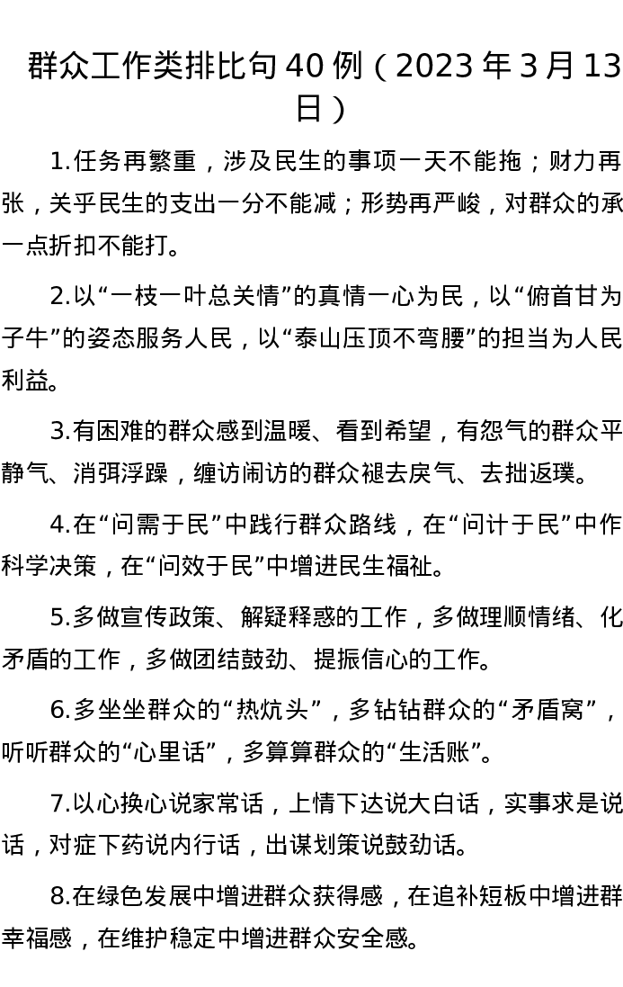 群众工作类排比句40例(2023年3月13日)