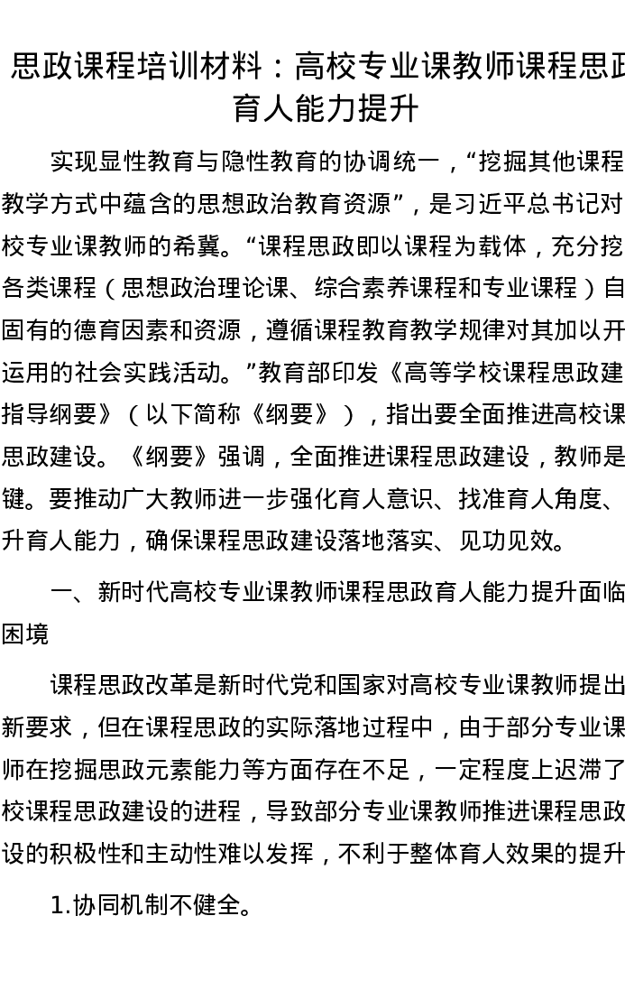 思政课程培训材料:高校专业课教师课程思政育人能力提升