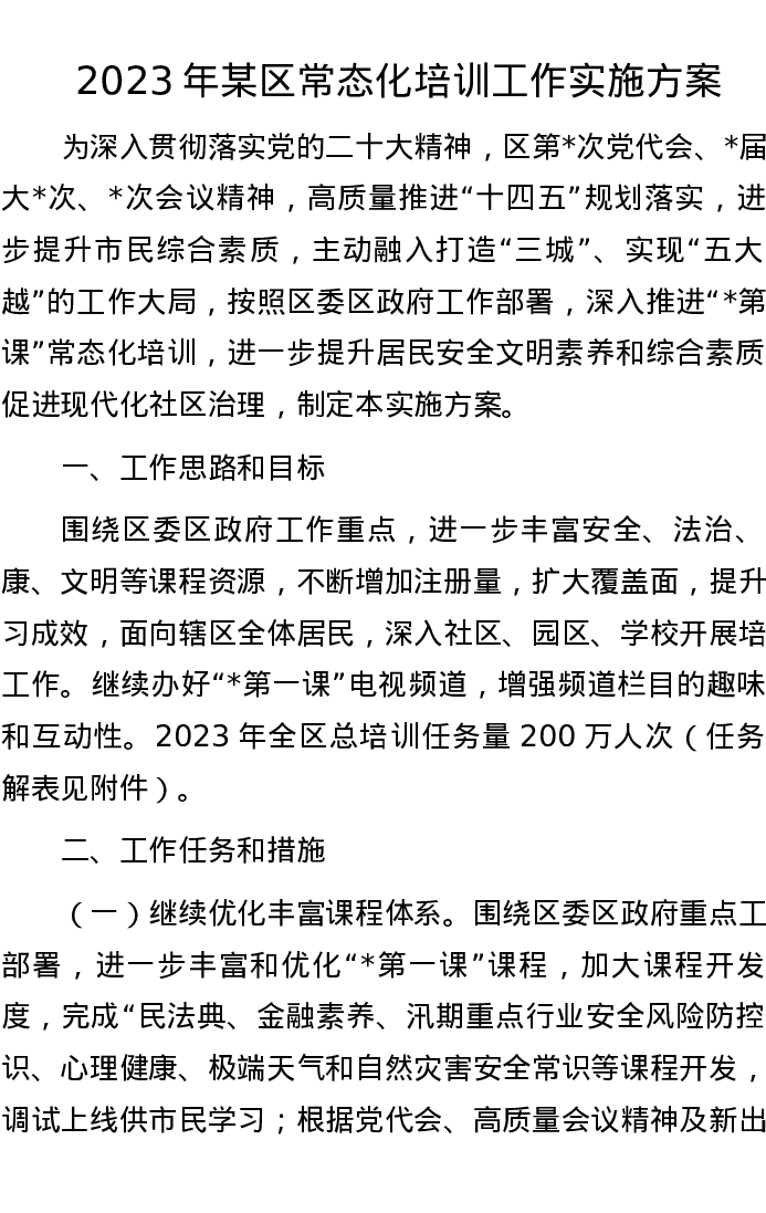 2023年某区常态化培训工作实施方案