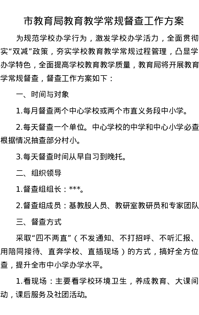市教育局教育教学常规督查工作方案