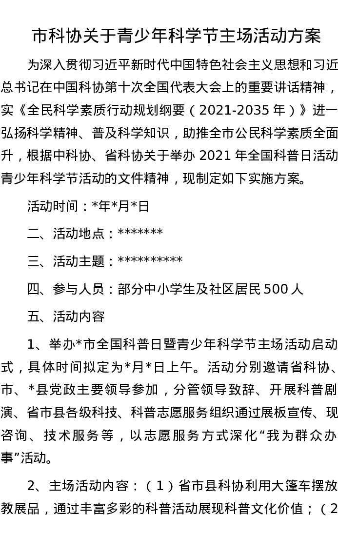市科协关于青少年科学节主场活动方案