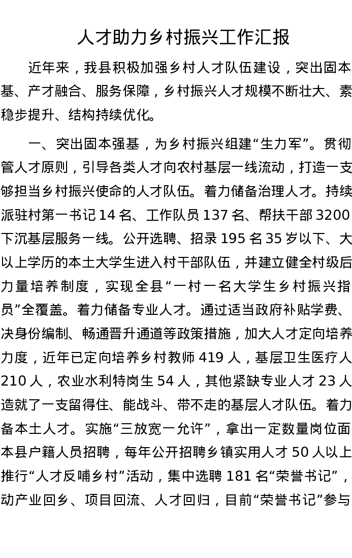 人才助力乡村振兴工作汇报