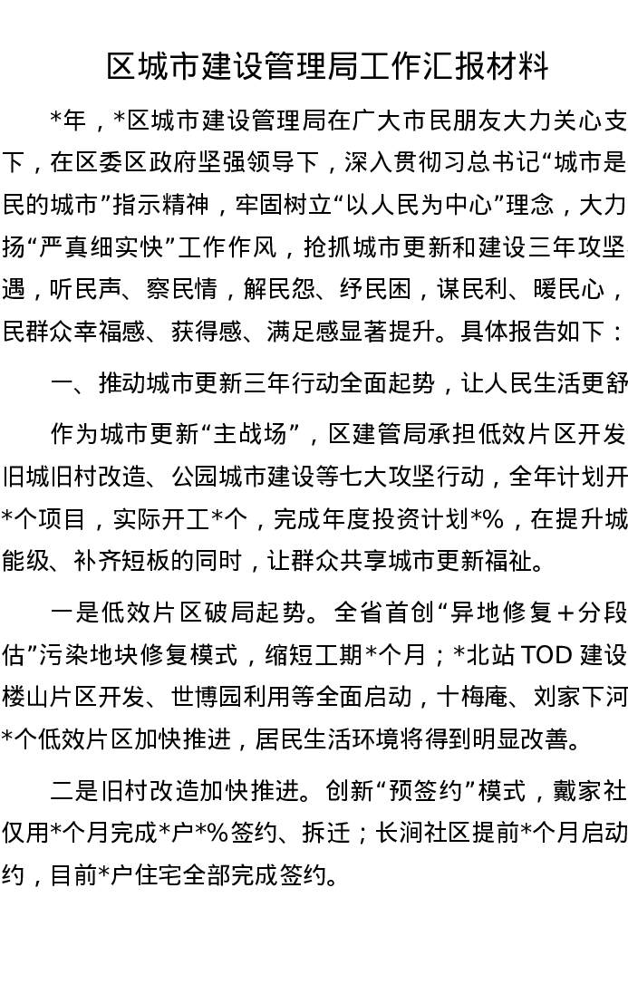 区城市建设管理局工作汇报材料