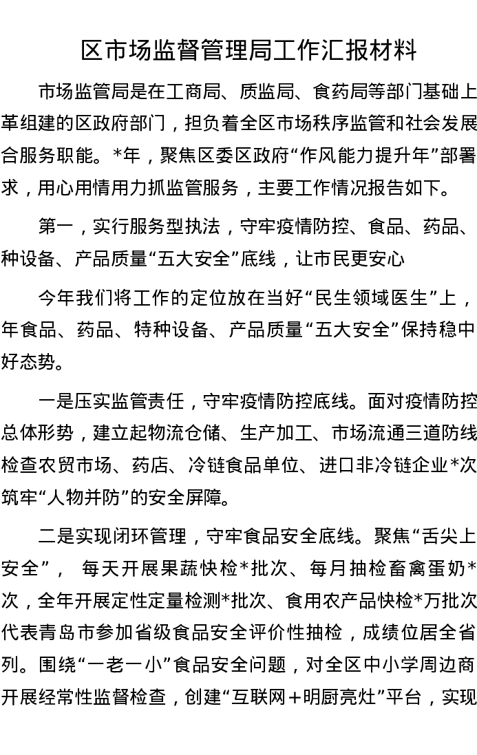 区市场监督管理局工作汇报材料