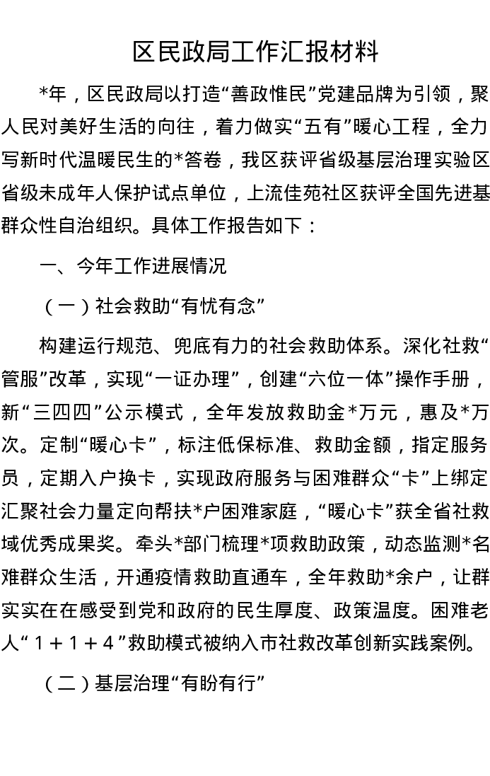 区民政局工作汇报材料
