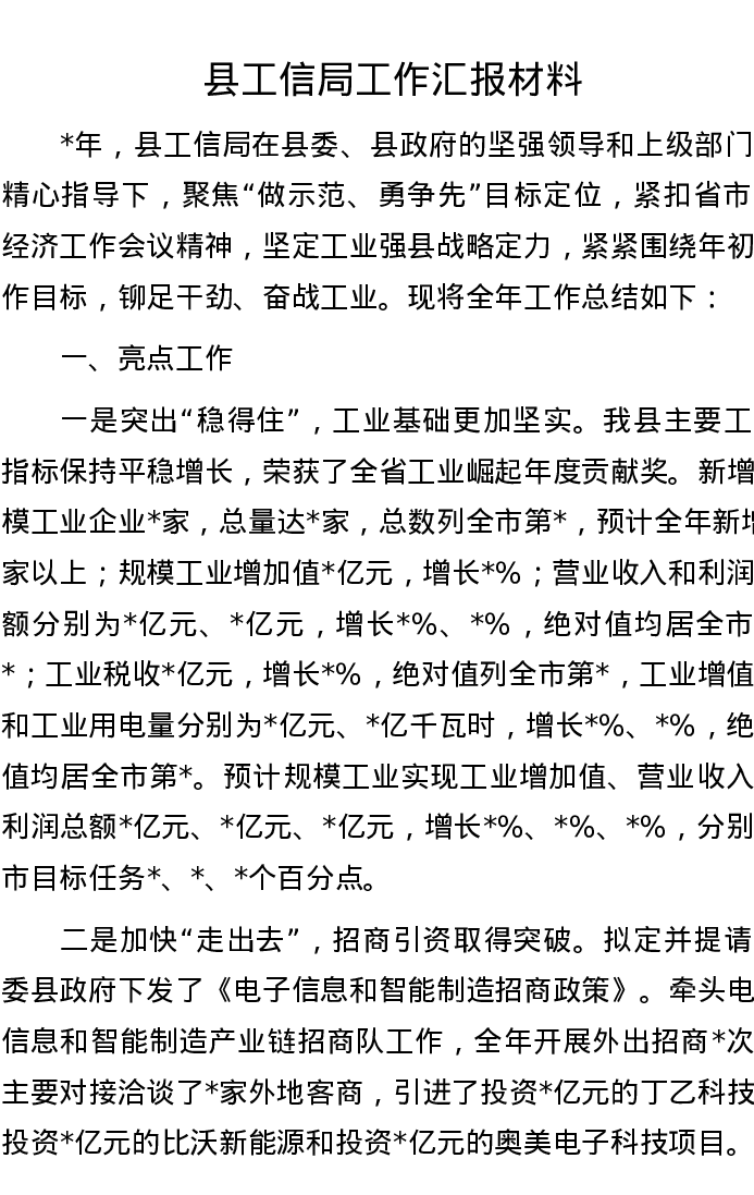 县工信局工作汇报材料