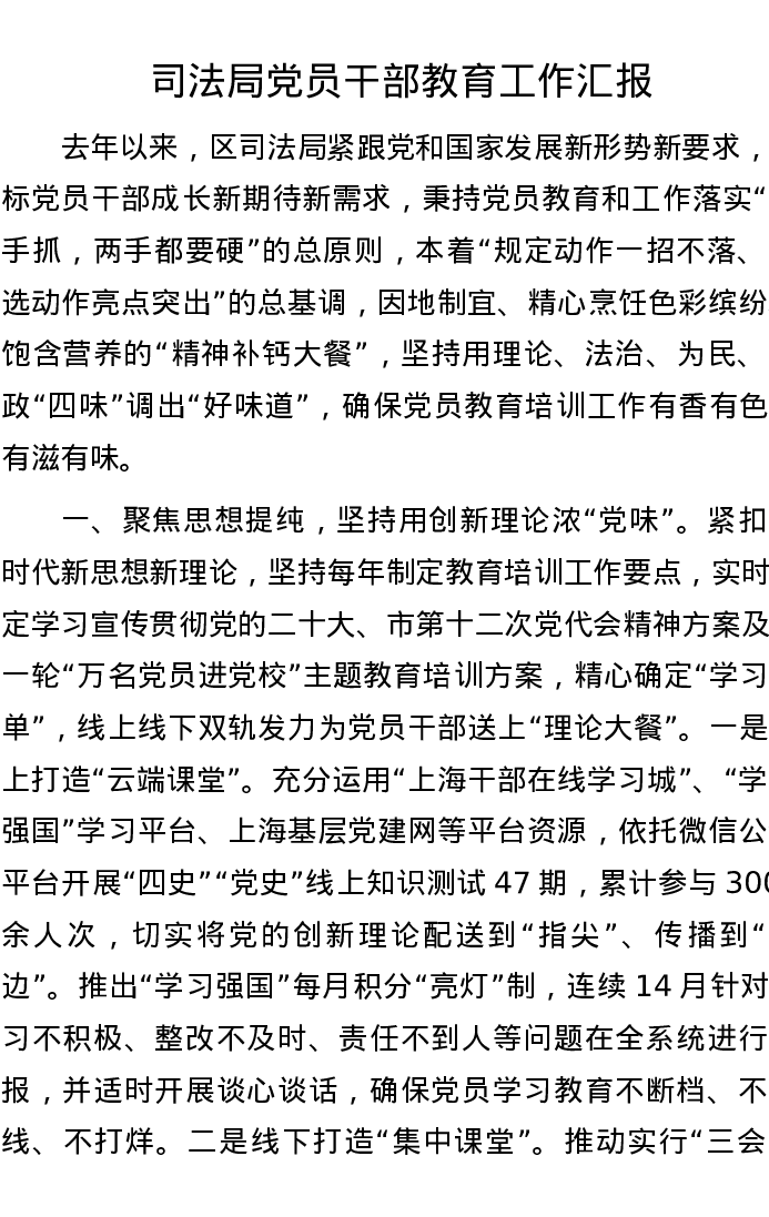 司法局党员干部教育工作汇报
