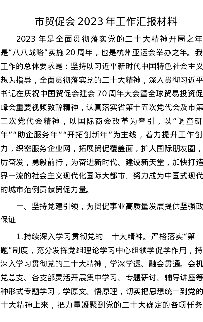 市贸促会2023年工作汇报材料